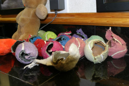 I have discovered a crime going on right under my nose...tennis ball slaughter.